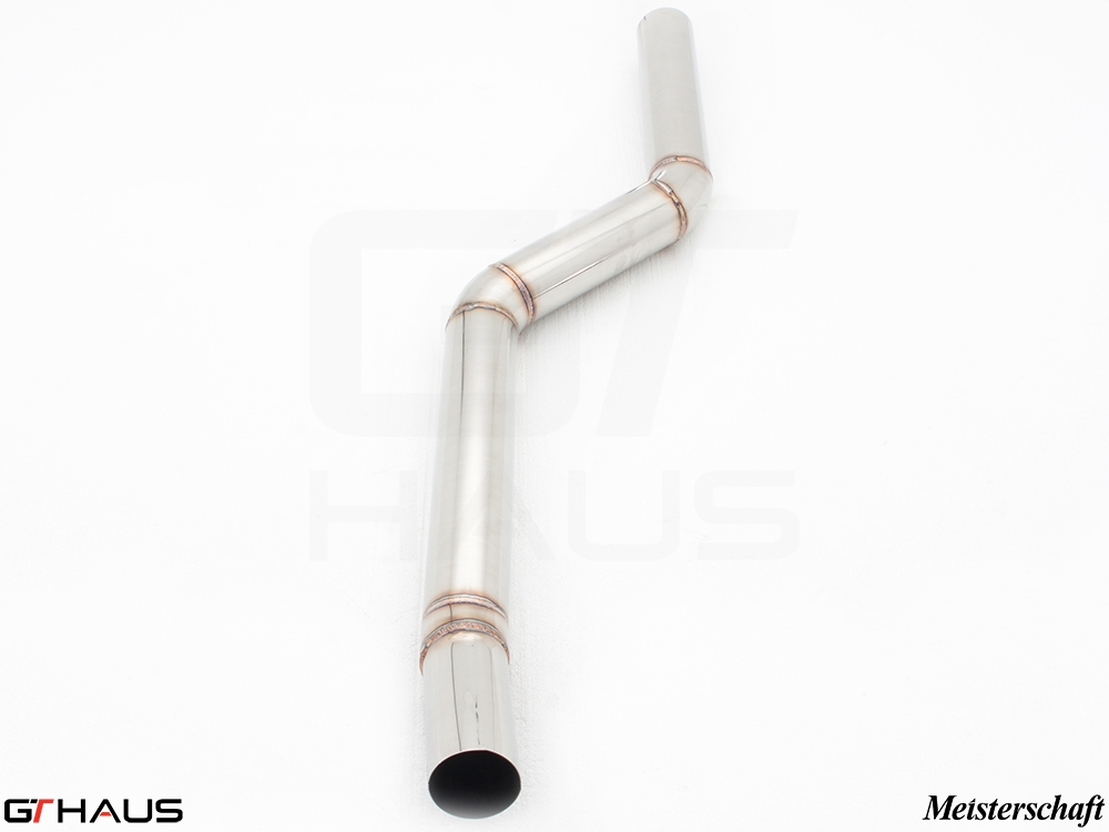 Mid y-pipe removes the stock dummy resonator. This is included with the Meisterschaft F12 6-series full primary cat back system.