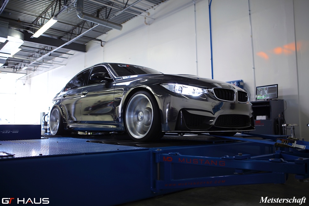 Equipped with a Meisterschaft full turbo back configuration including catless downpipes, single 90mm cat-back LX pipe, and TITANIUM GT Racing rear muffler section, the car put down phenomenal numbers on our Mustang Dyno. No flashes or piggyback tunes were used, the cars software was 100% stock.