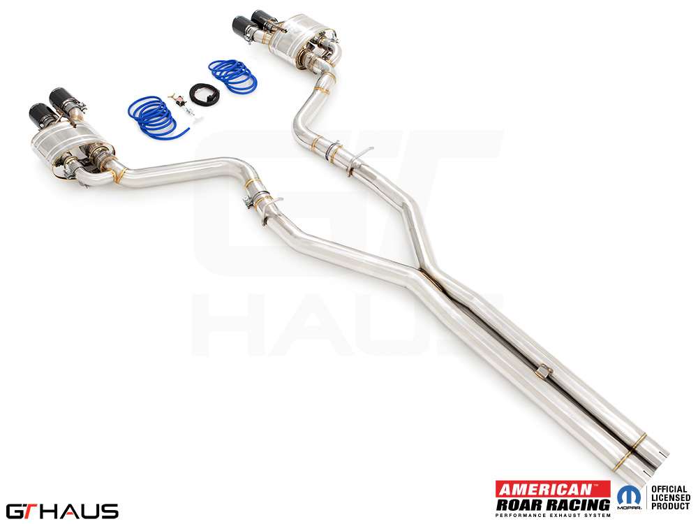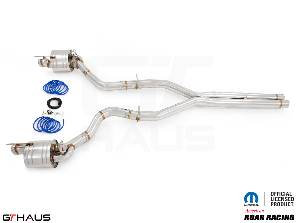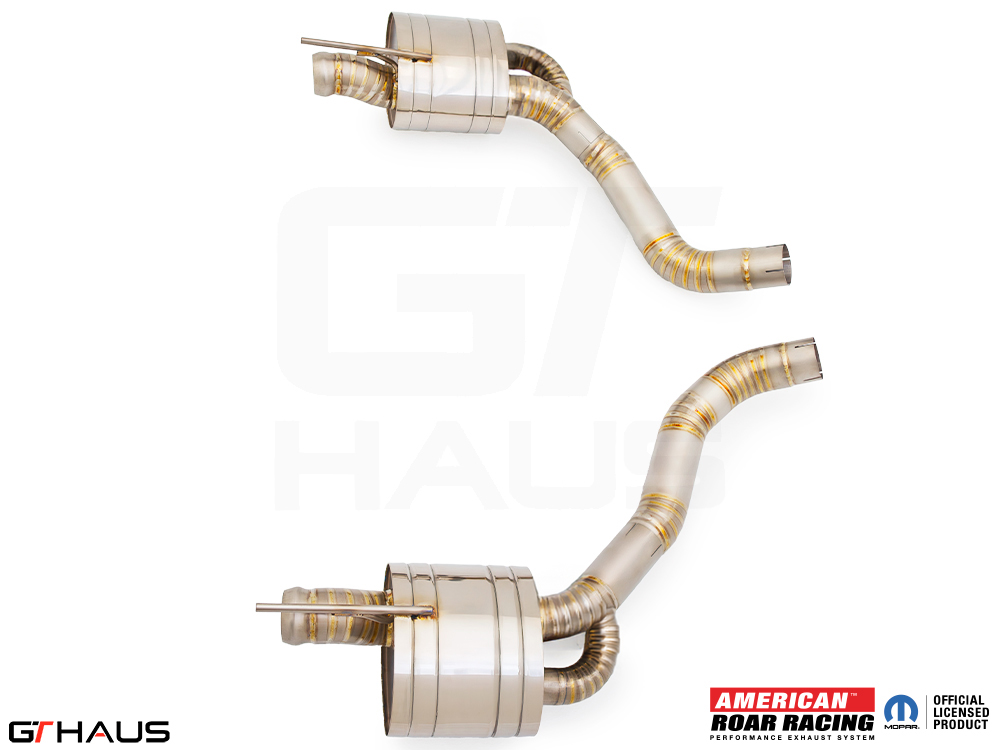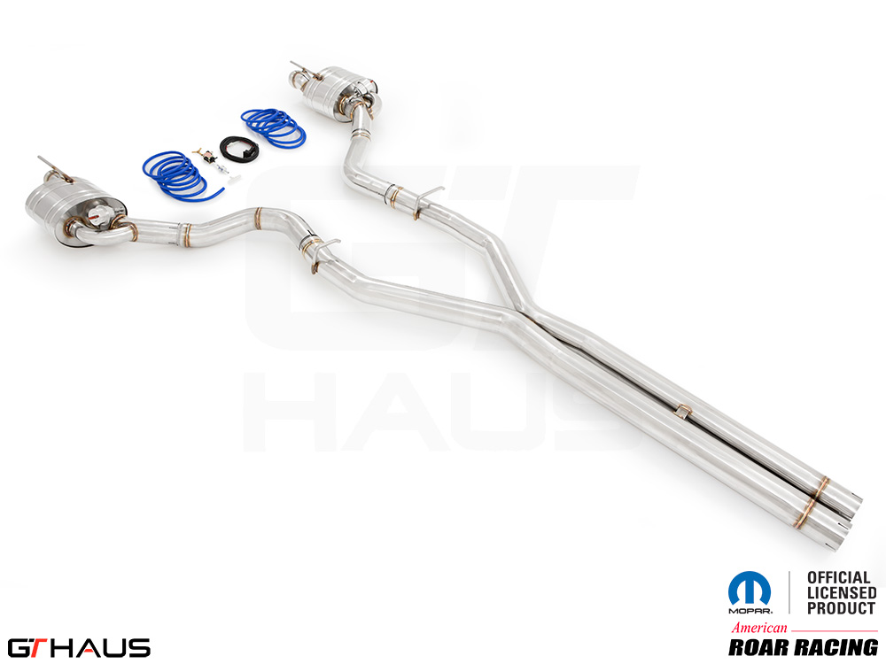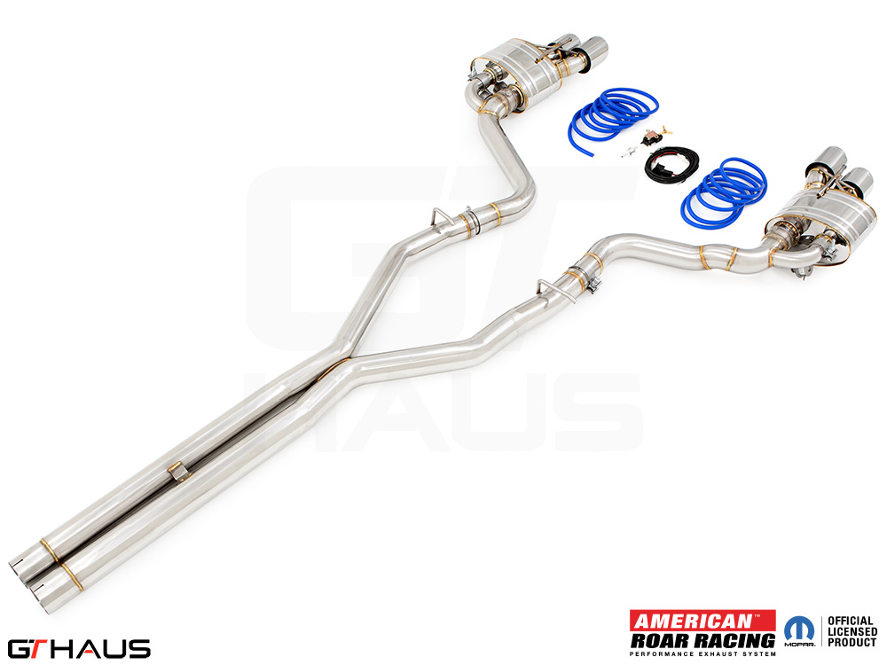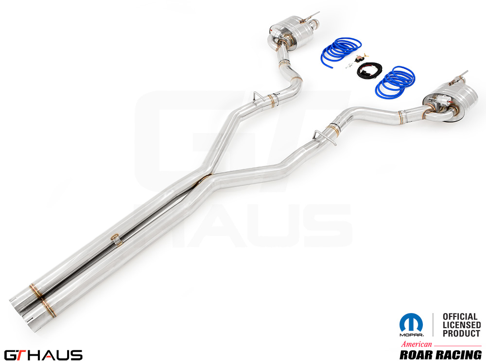 We began prototyping the Roar Racing Super GT, a non-valved, no-nonsense, purists performance exhaust system. The full system features a dual 3″ X-Pipe which leads into a pair of Roar Racing mufflers specifically engineered for HEMI engines in order to provide maximum performance gains. The exhaust exits the rear of the car through our double-walled LeMans style quad tips. All of this hand built from T-304 grade polished stainless steel. Picture below: