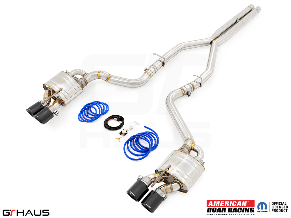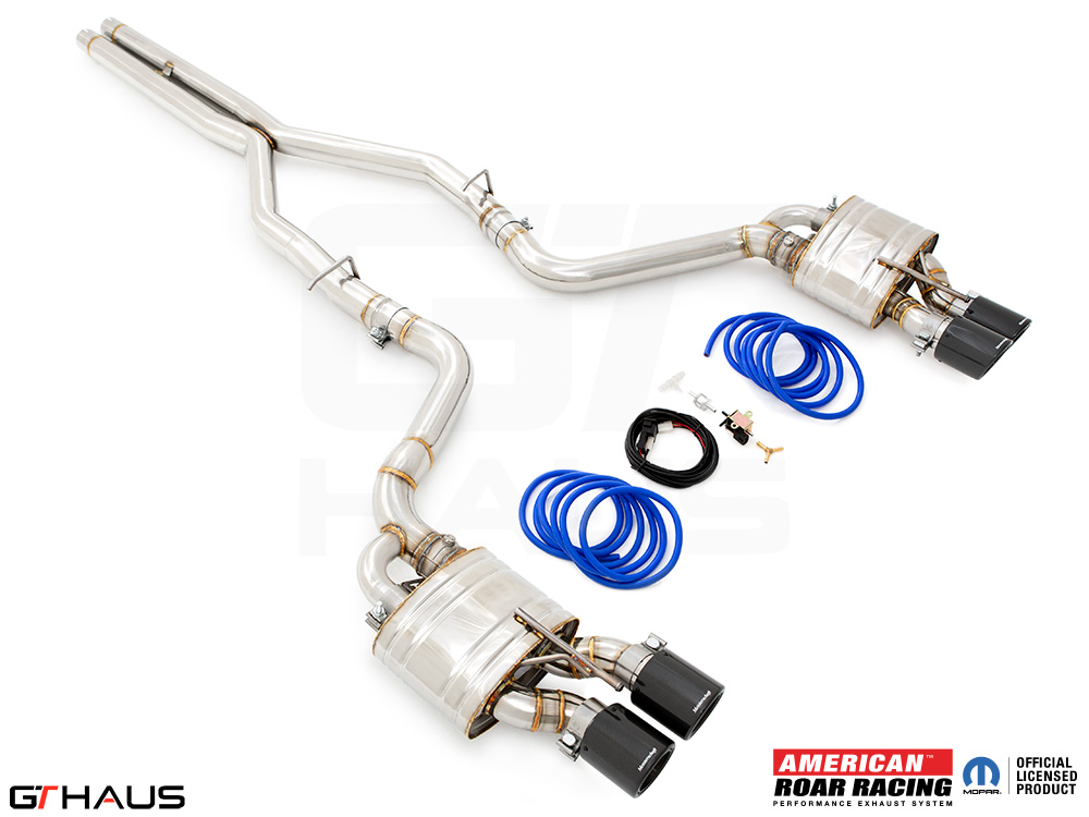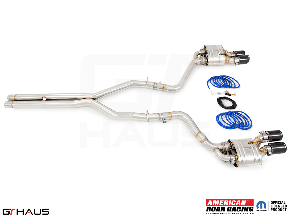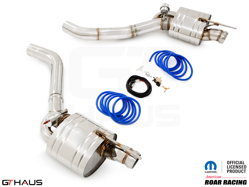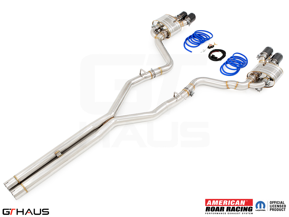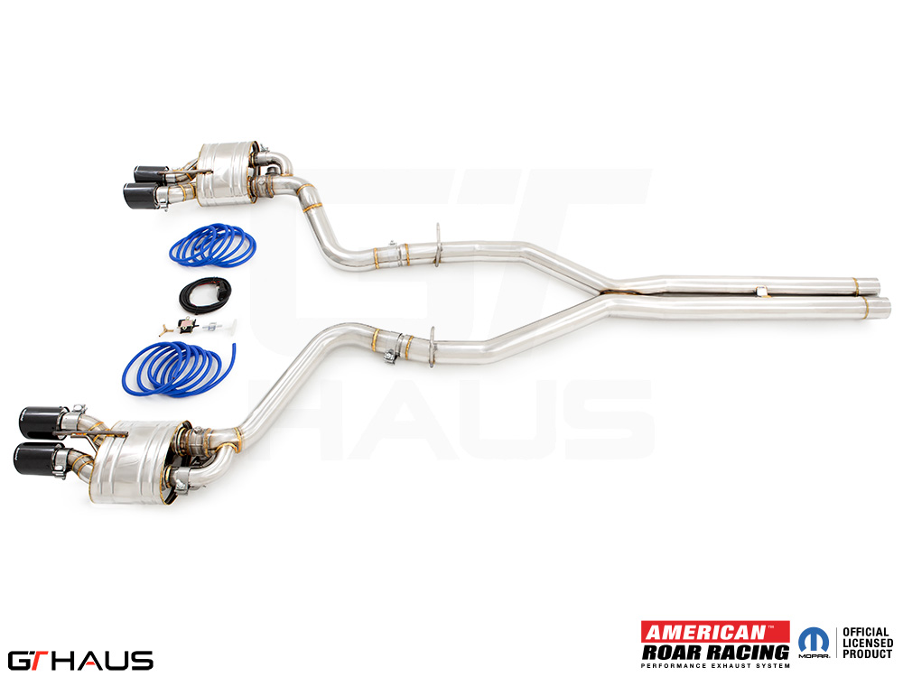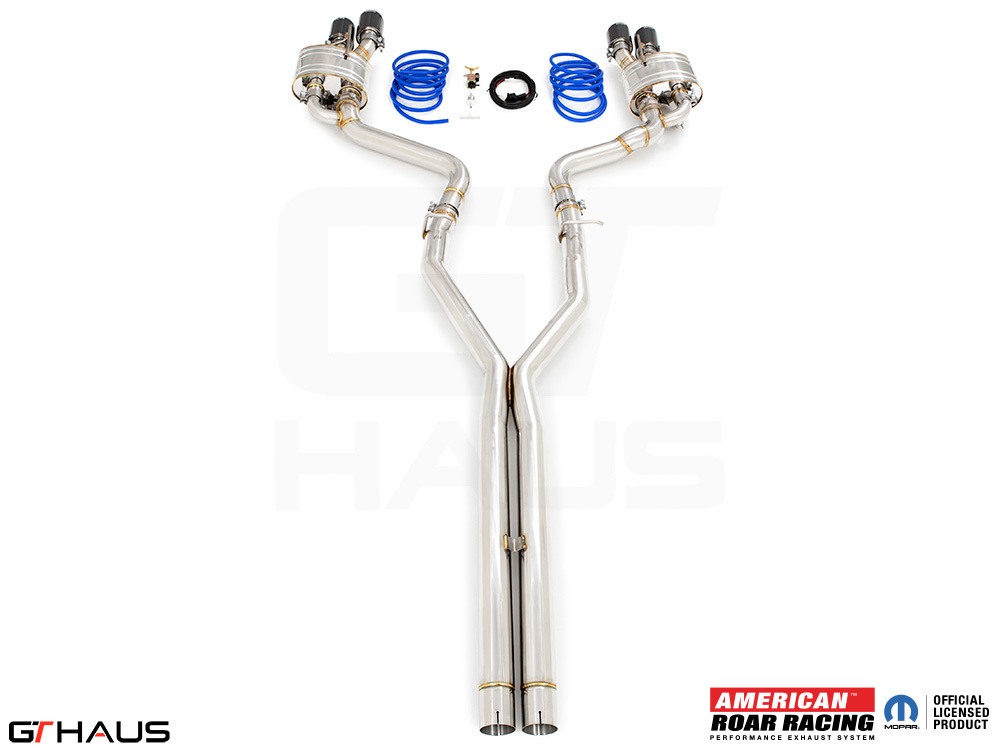 We began prototyping the Roar Racing Super GT, a non-valved, no-nonsense, purists performance exhaust system. The full system features a dual 3″ X-Pipe which leads into a pair of Roar Racing mufflers specifically engineered for HEMI engines in order to provide maximum performance gains. The exhaust exits the rear of the car through our double-walled LeMans style quad tips. All of this hand built from T-304 grade polished stainless steel. Picture below: