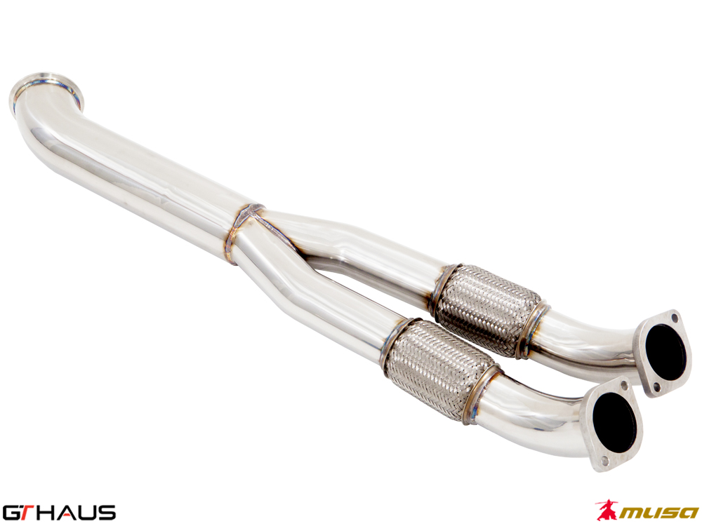 Bolt on mid-pipe section removes secondary catalytic converters and also replaces stock dummy resonator with Y pipe (straight) to maximize the exhaust flow.